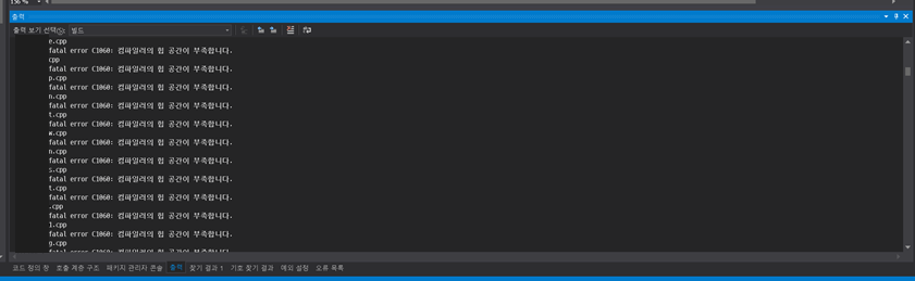 빌드 도중 컴파일러의 힙 공간이 부족합니다.